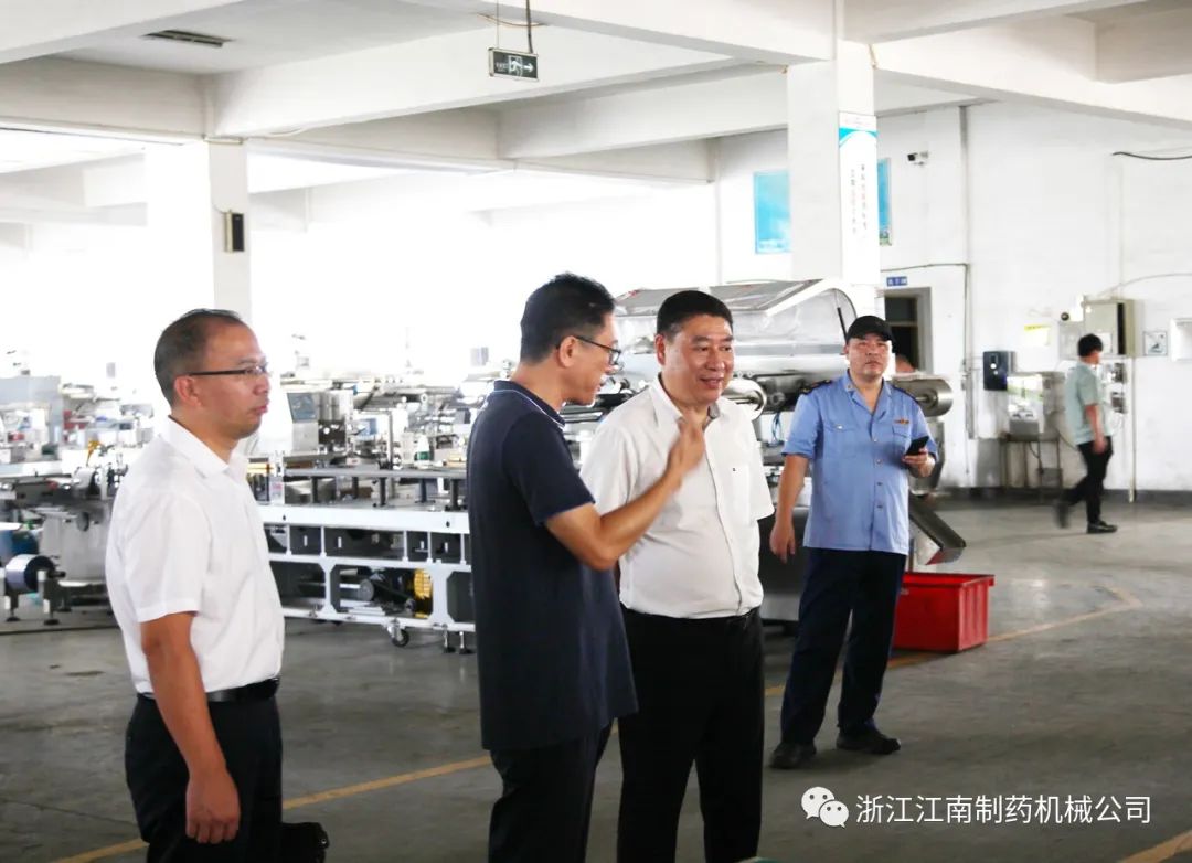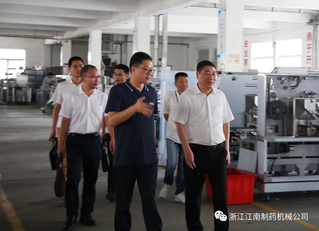 7月14日上午,瑞安市林政洪副市长一行莅临浙江江南公司调研指导工作,林副市长一行走进浙江江南铝塑泡罩包装机车间、高效智能包衣机车间、药品包装自动生产线车间以及成品展示车间,听取企业介绍。