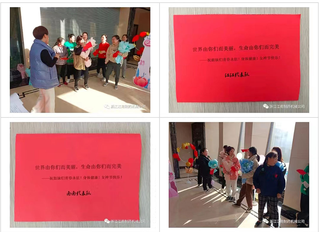 在“三八”国际劳动妇女节来临之际,为了促进女职工身心健康,展示女职工健康向上、文明快乐的精神风貌,进一步激发员工争先创优的热情,增强员工的凝聚力和集体荣誉感,浙江江南制药机械有限公司组织开展“魅力女性,快乐巾帼”庆祝“三八”国际劳动妇女节主题活动。